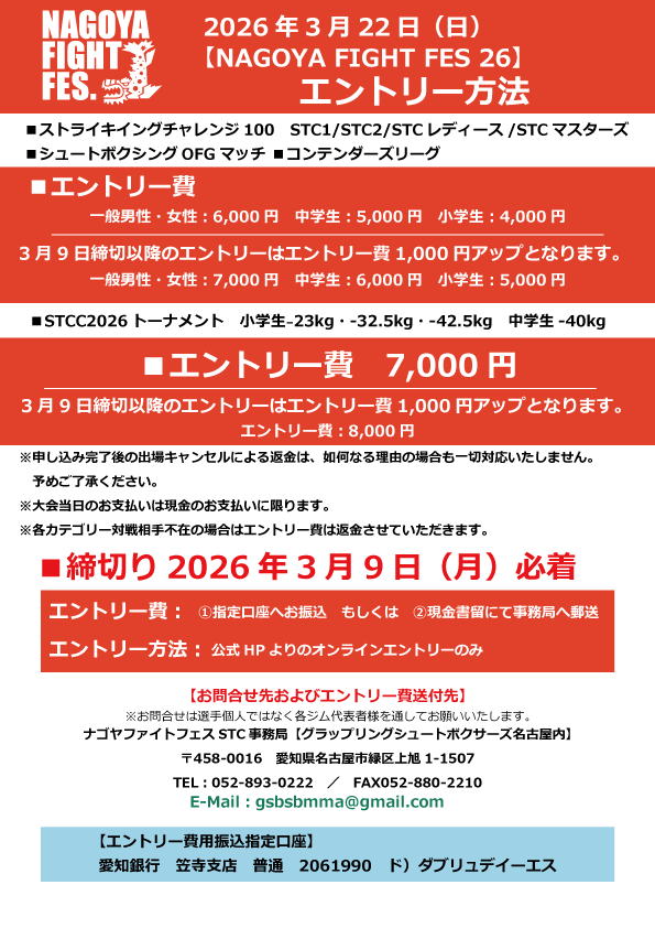 【NAGOYA FIGHT FES 26】2026.3.22(SUN)